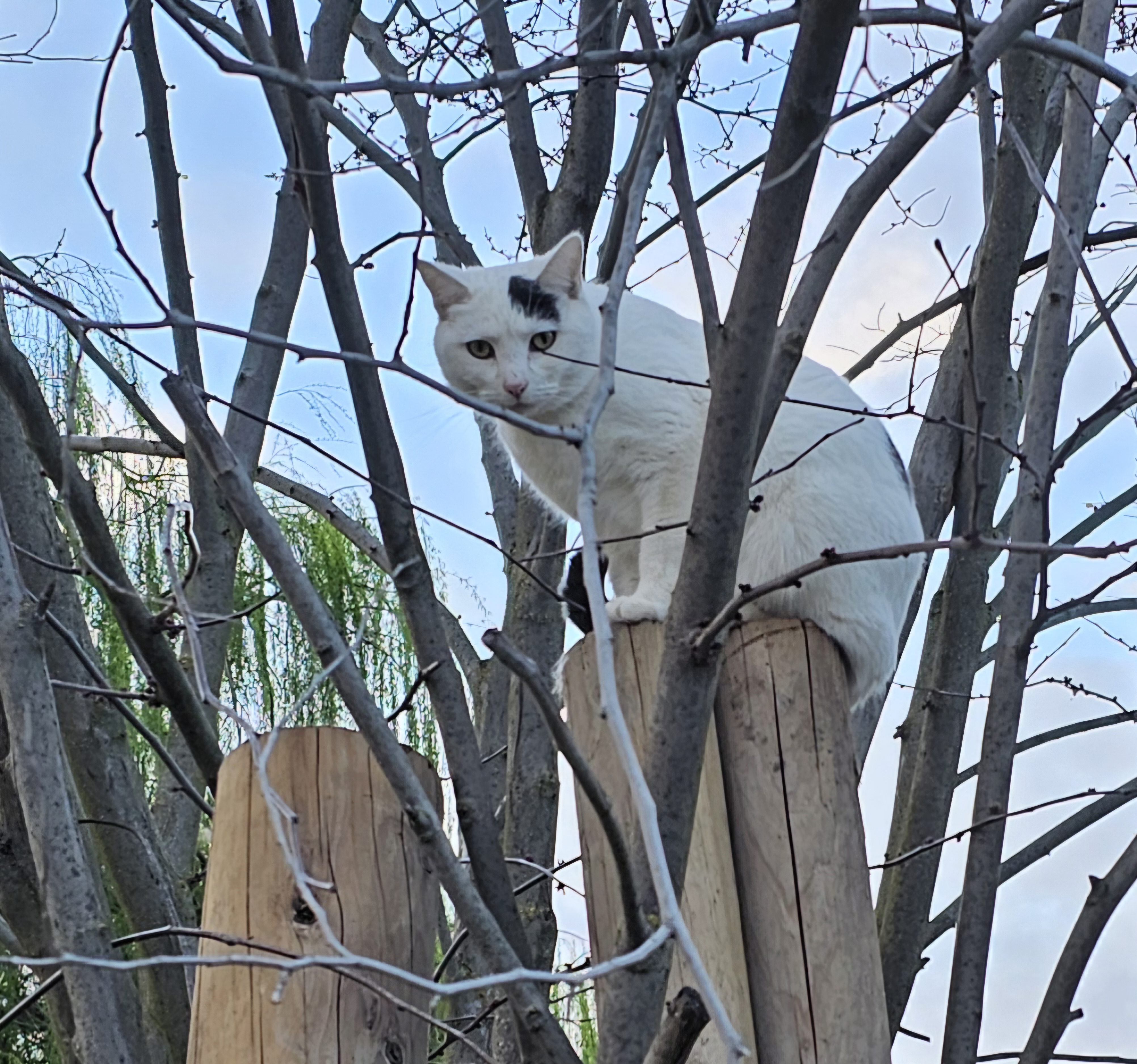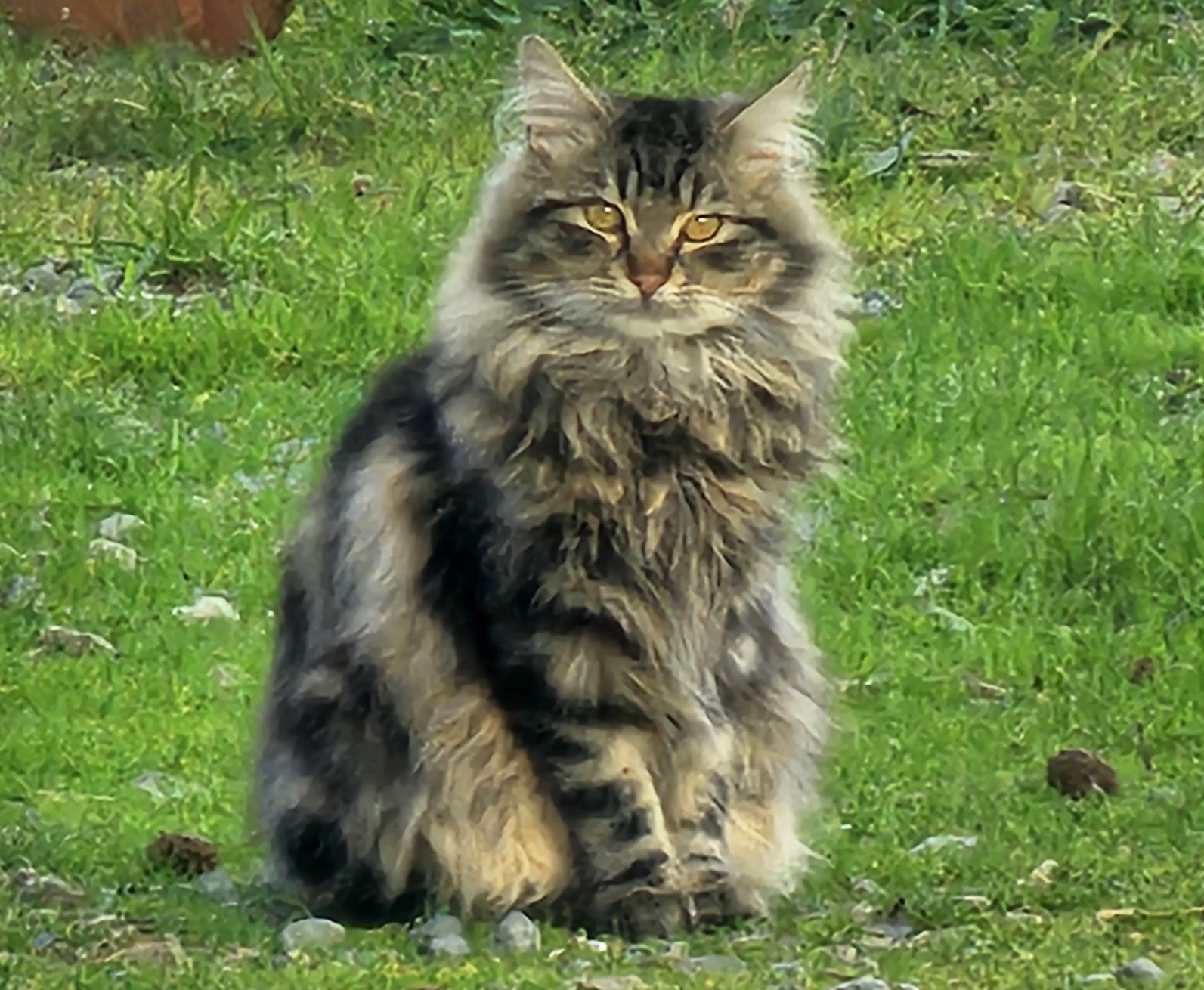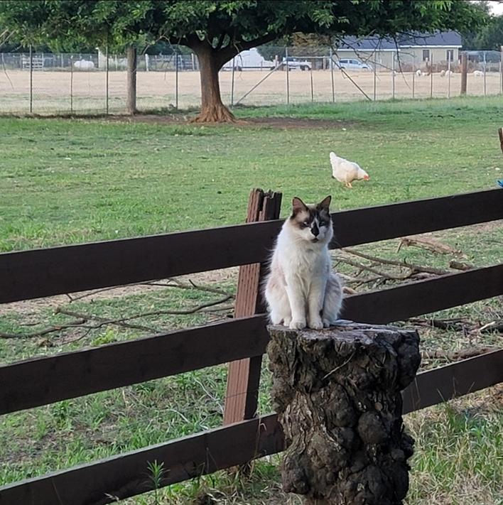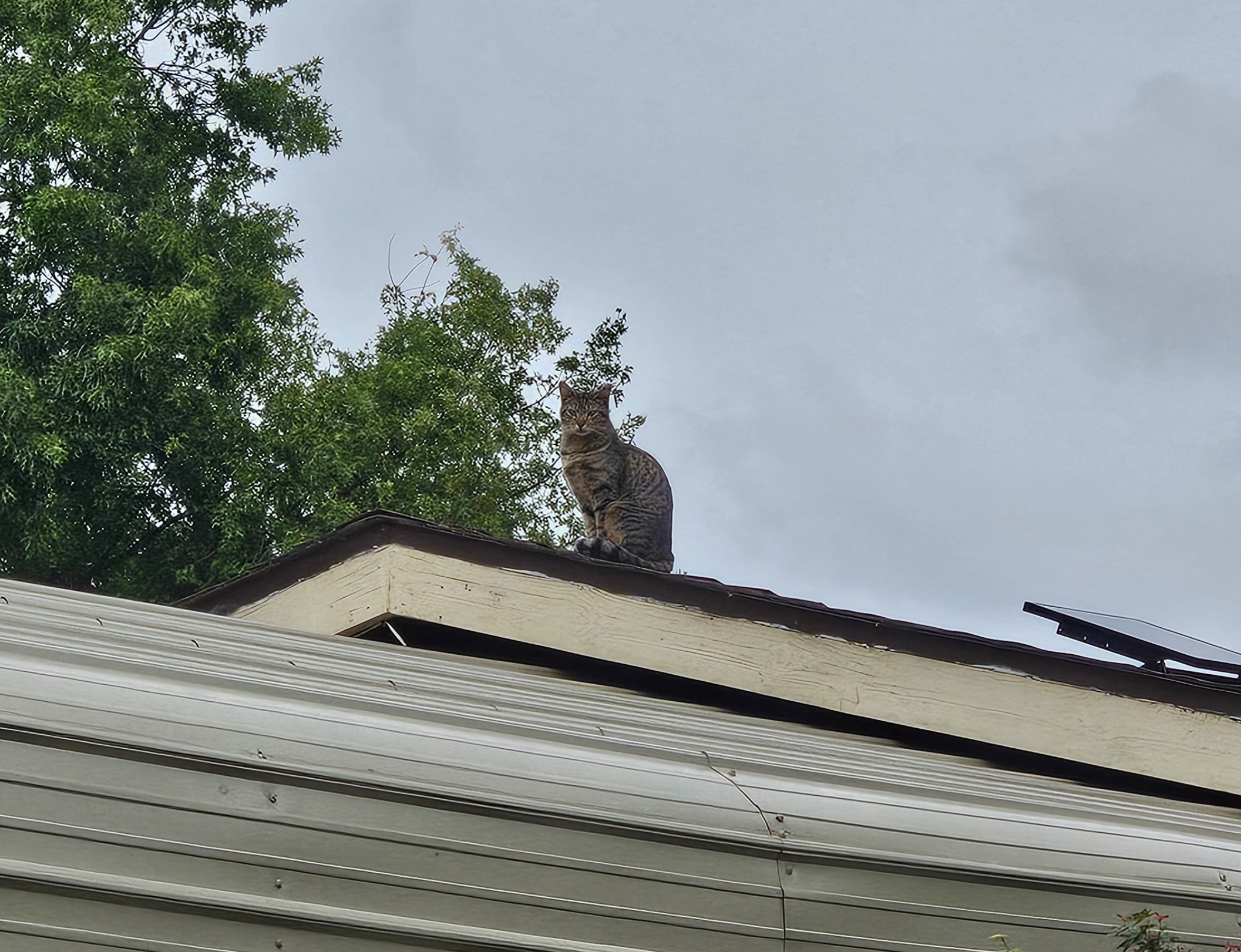 Cats have inside and outside access through cat doors in the house, garage, and sheds.